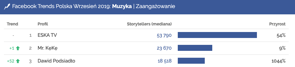 Profile o największym zaangażowaniu w kategorii Muzyka, wrzesień 2019