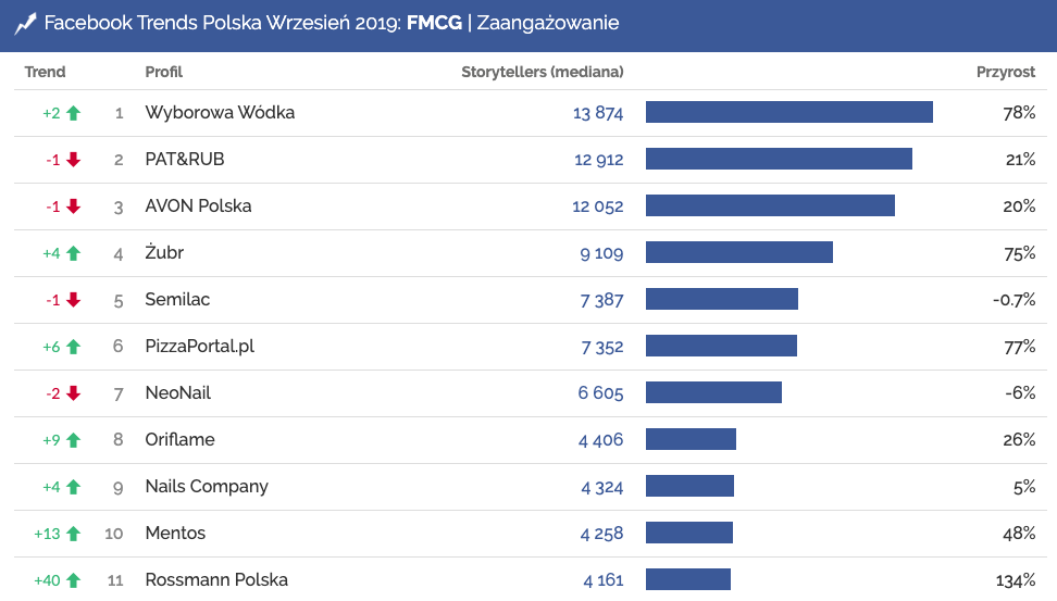 Profile w kategorii FMCG o największym zaangażowaniu na Facebooku, wrzesień 2019
