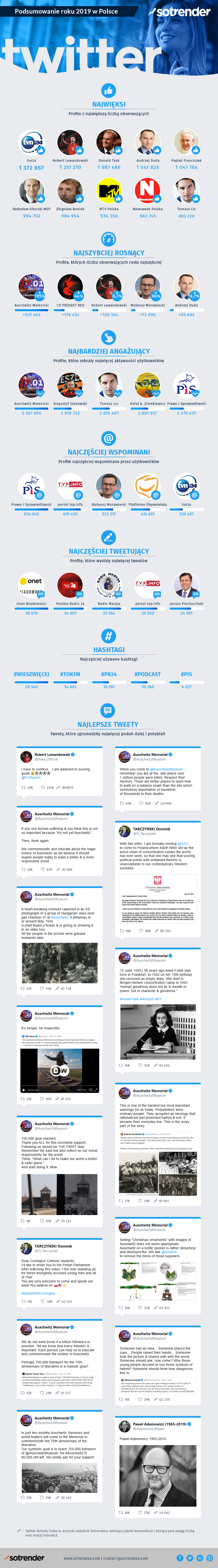 Z kolei najbardziej angażującym i jednocześnie najszybciej rosnącym profilem w 2019 roku był profil Auschwitz Memorial, czego doskonałe odzwierciedlenie zobaczycie w zestawieniu najlepszych tweetów.