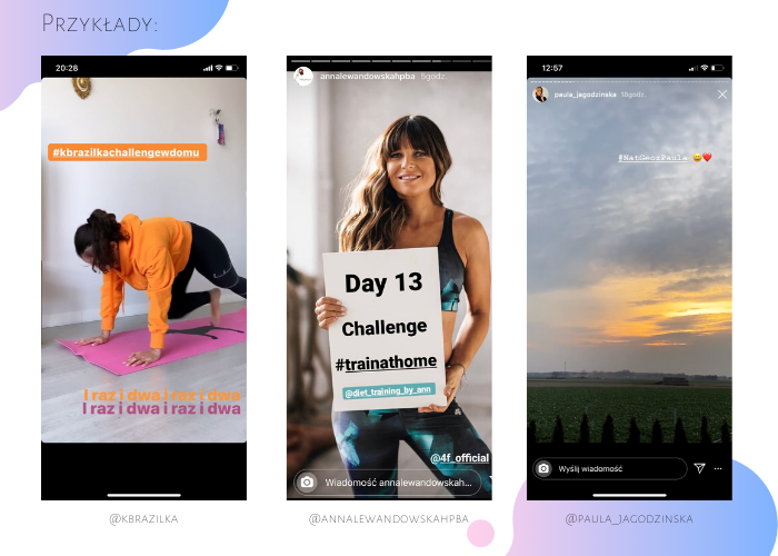 Z kolei Ciocia liestyle* codziennie w swoich Stories na Instagramie pokazuje dania, które przyrządza, i które każdy sam może zrobić w domu. Inspiruje tym samym innych do gotowania, a następnie udostępnia relacje swoich followersów u siebie.