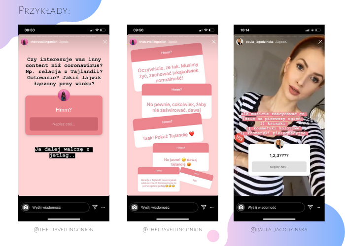 Zdobycie tej wiedzy nigdy nie było prostsze – wystarczy post na Instagramie czy Facebooku lub Stories z elementami interaktywnymi, gdzie jednym kliknięciem użytkownicy mogą dać znać, jakie treści chcieliby u Was obecnie oglądać.