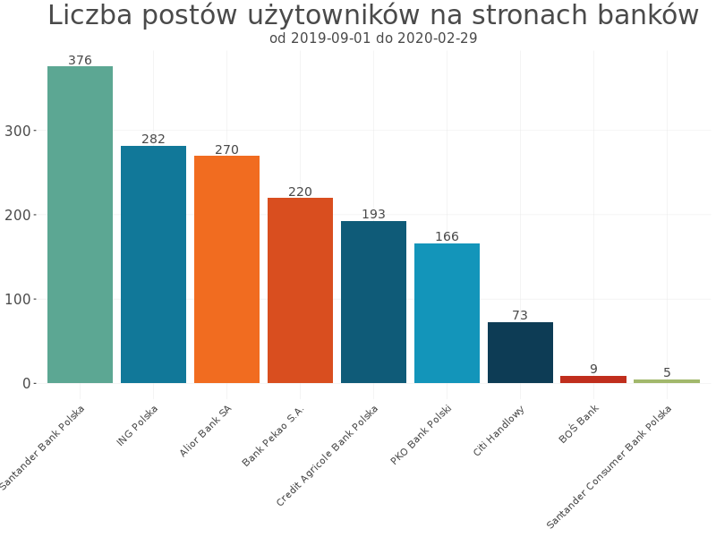 Liczba postów użytkowników na stronach banków