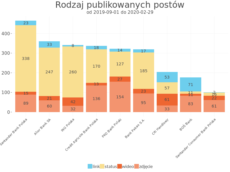 Typy postów publikowane na stronach banków