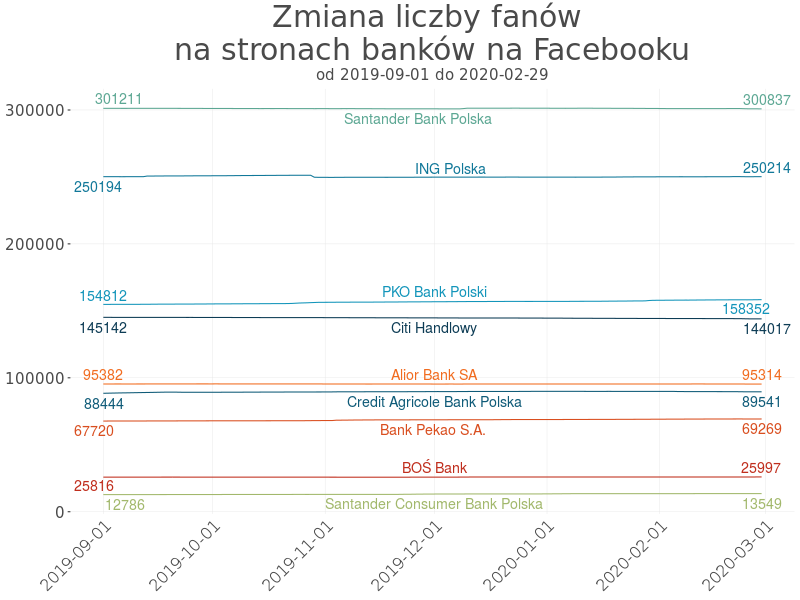 Zmiana liczby fanów na stronach banków na Facebooku