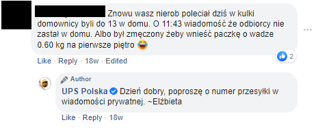 Wybraliśmy 3 strony na Facebooku, na których pojawiało się wyjątkowo dużo komentarzy i postów użytkowników w tym okresie – 2 firm kurierskich: GLS Poland i UPS Polska oraz Poczty Polskiej.