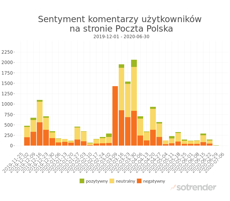 O ile Poczta Polska, podobnie jak inne strony zebrała bardzo mało komentarzy o sentymencie pozytywnym, to w przypadku tej strony liczba komentarzy sklasyfikowanych jako negatywne była zbliżona lub nieco mniejsza niż komentarzy neutralnych.