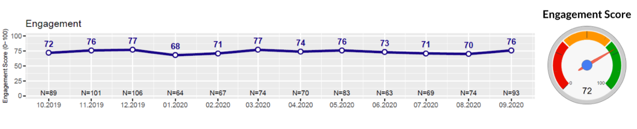 Dodatkowo, bazując na wskaźniku Engagement Score i Emotions Score, jesteśmy w stanie przeanalizować kondycję marki w czasie – na przestrzeni ostatniego roku, a w miarę potrzeby także w porównaniu do lat poprzednich.
