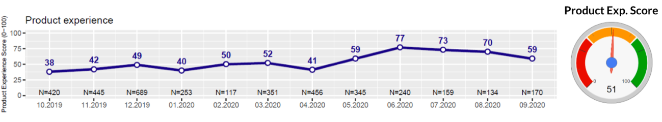 Z kolei Product Experience Score jest agregatem emocji związanych z dyskusjami o konkretnych produktach na profilu marki. Bazuje na wydźwięku (sentymencie) komentarzy pod postami, w których wymienione są poszczególne produkty – wskazuje, które z nich wzbudzają pozytywne, a które negatywne emocje.