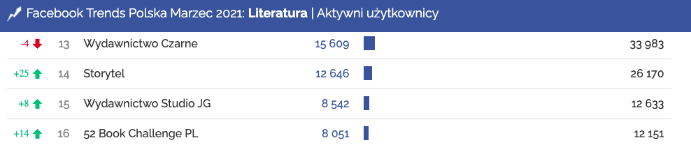 Awans profilu Storytel w kategorii Literatura, Aktywni użytkownicy | Facebook, marzec 2021