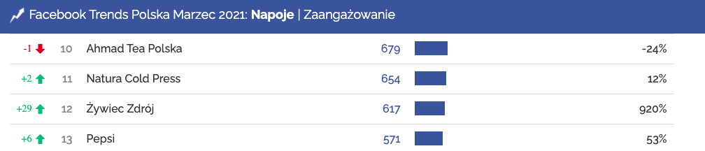 Awans profilu Żywiec Zdrój w kategorii Napoje | Facebook, marzec 2021