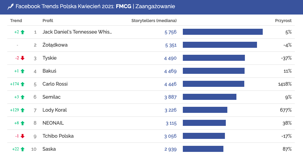Profile o największym zaangażowaniu w kategorii FMCG | Facebook, kwiecień 2021