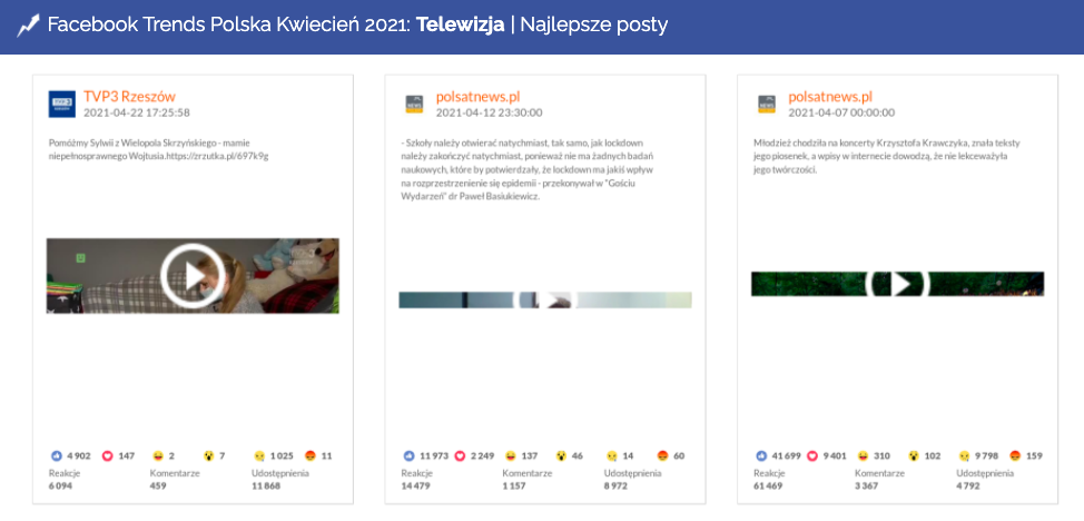 Najlepsze posty w kategorii Telewizja| Facebook, kwiecień 2021