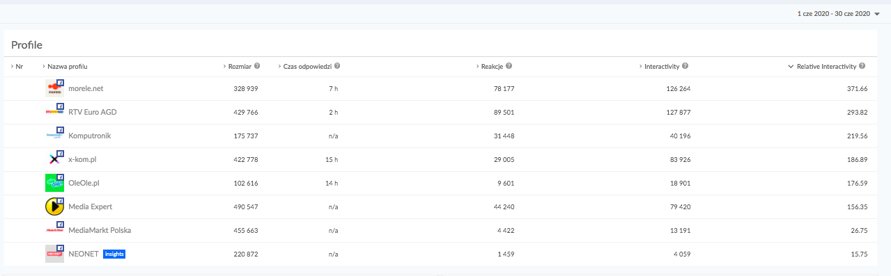 W czerwcu 2020 roku wskaźnik Relative Interactivity Index dla profilu Neonet wynosił zaledwie 15…