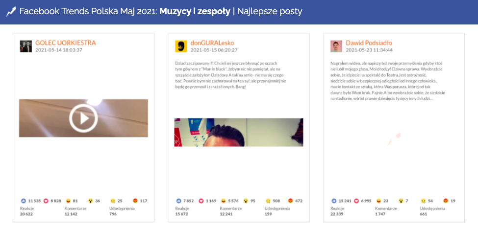 Najlepsze posty w kategorii Muzycy i zespoły w maju 2021 na Facebooku
