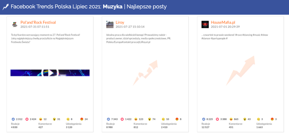 Dodatkowo, jeden z postów na profilu Pol’and’Rock Festival był najlepszym postem miesiąca w całej kategorii Muzyka.