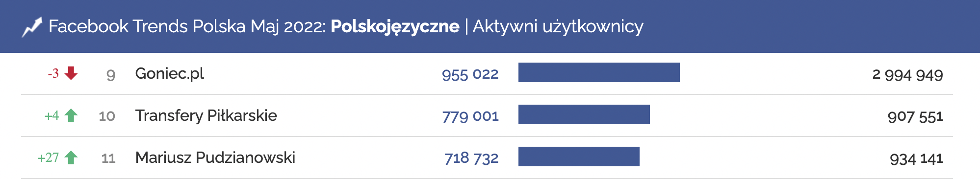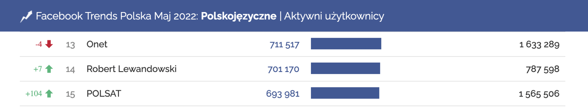 Profil Polsatu odnotował duży wzrost – w kategorii Polskojęzyczne, w rankingu aktywnych użytkowników, awansował aż o 104 pozycje i znalazł się na 15. miejscu.