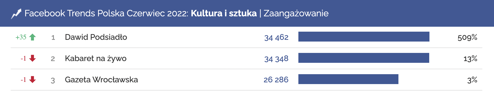 Profile o największym zaangażowaniu użytkowników, Kultura i sztuka | Facebook, czerwiec 2022