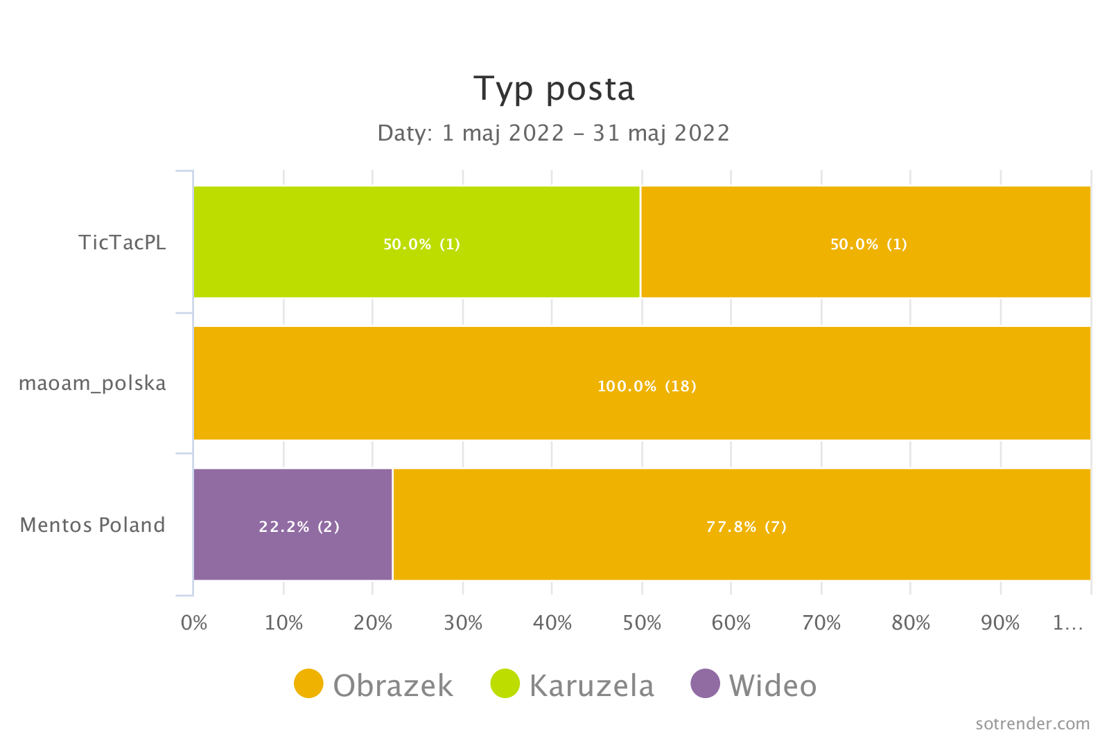 Poza analizą poszczególnych postów, w Sotrenderze możesz sprawdzić też jakie typy postów publikują Twoi konkurenci.