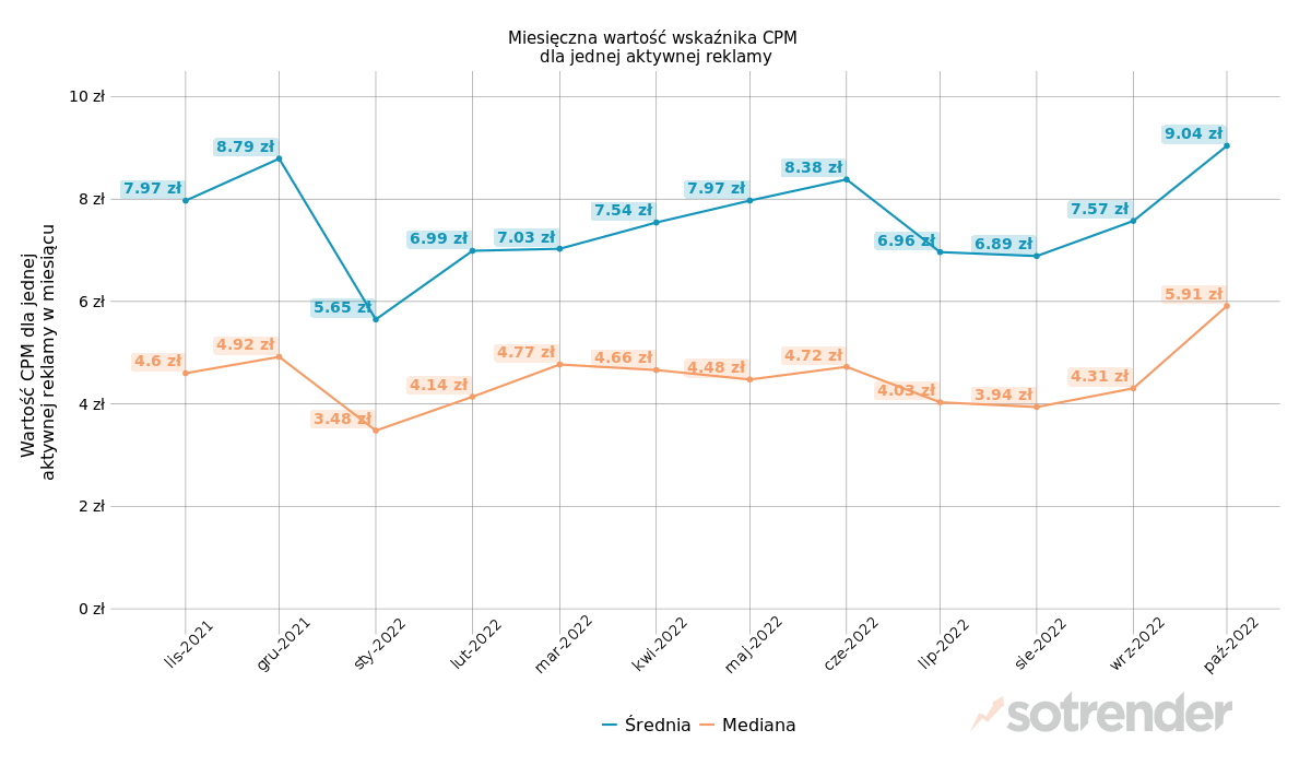 Wraz ze zbliżającym się Black Friday i okresem okołoświątecznym możemy spodziewać się jedynie dalszego wzrostu kosztu dotarcia do tysiąca użytkowników.