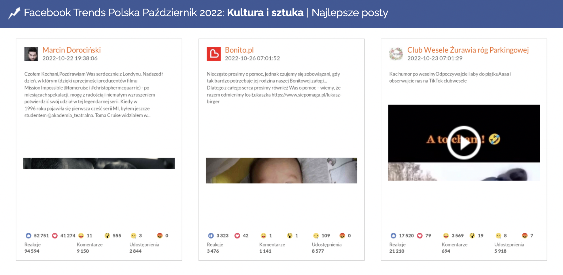 Najlepsze posty w kategorii Kultura i sztuka w październiku 2022 na polskim Facebooku