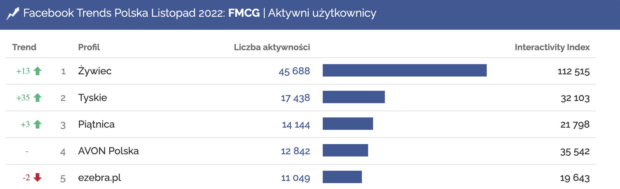 Najlepsze profile w listopadzie pod względem liczby aktywności na profilu w kategorii FMCG