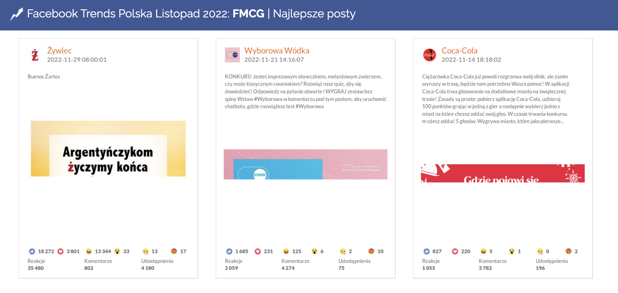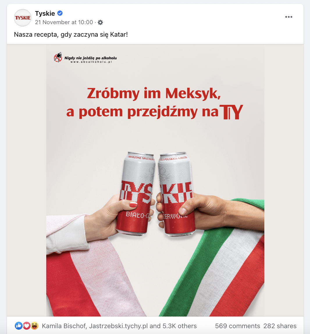 Z kolei piątym najlepszym postem w całej kategorii FMCG był post marki Tyskie opublikowany przed meczem polskiej reprezentacji z Meksykiem.