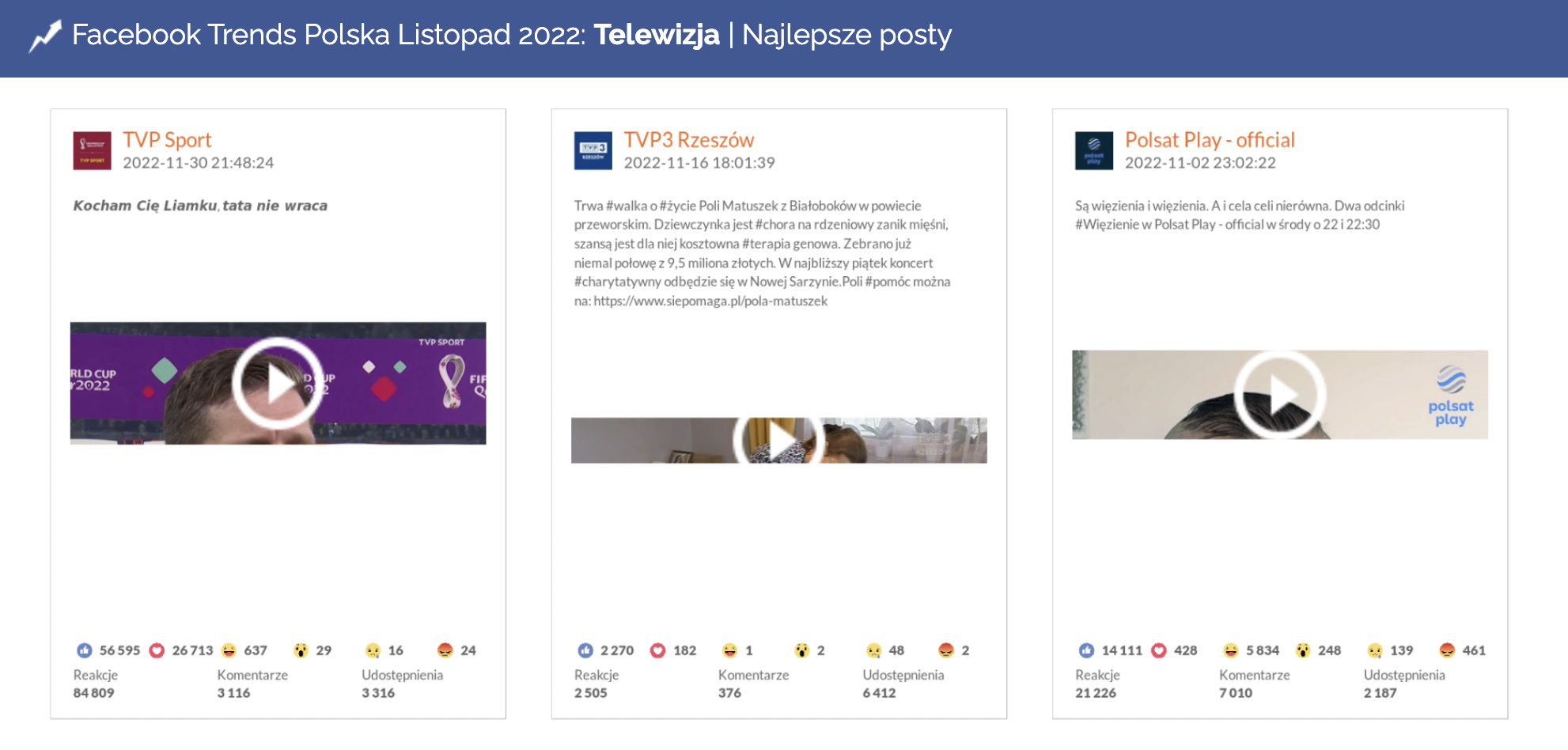 Najlepsze posty na Facebooku w listopadzie w kategorii Telewizja