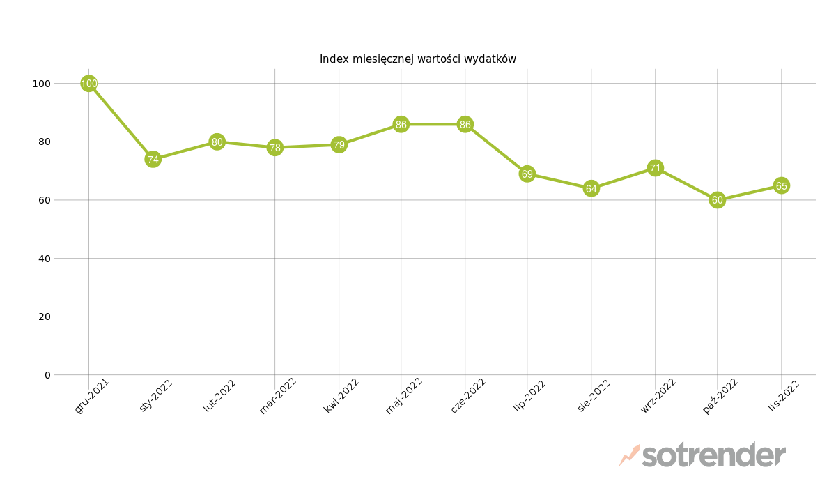 Łączna wartość wydatków była z kolei nieco wyższa niż w październiku, natomiast utrzymała się na względnie stałym poziomie, jaki obserwować mogliśmy przez ostatnich kilka miesięcy.
