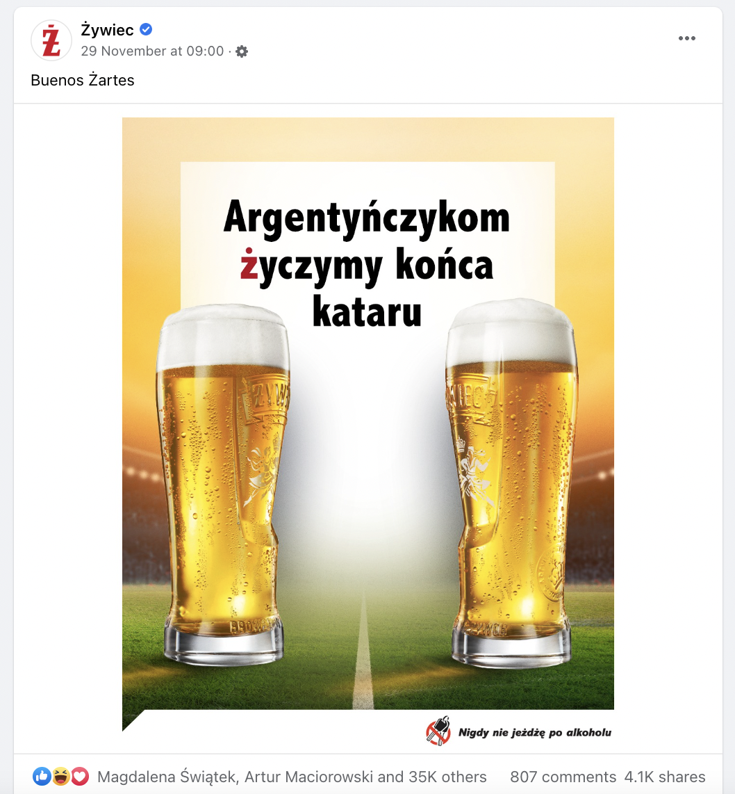 Post na profilu marki Żywiec przed meczem z Argentyną
