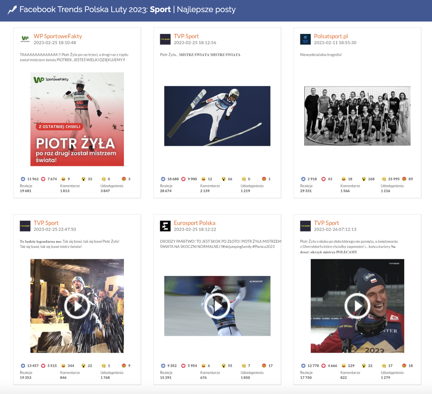 Najlepsze posty w kategorii Media sportowe na Facebooku, luty 2023
