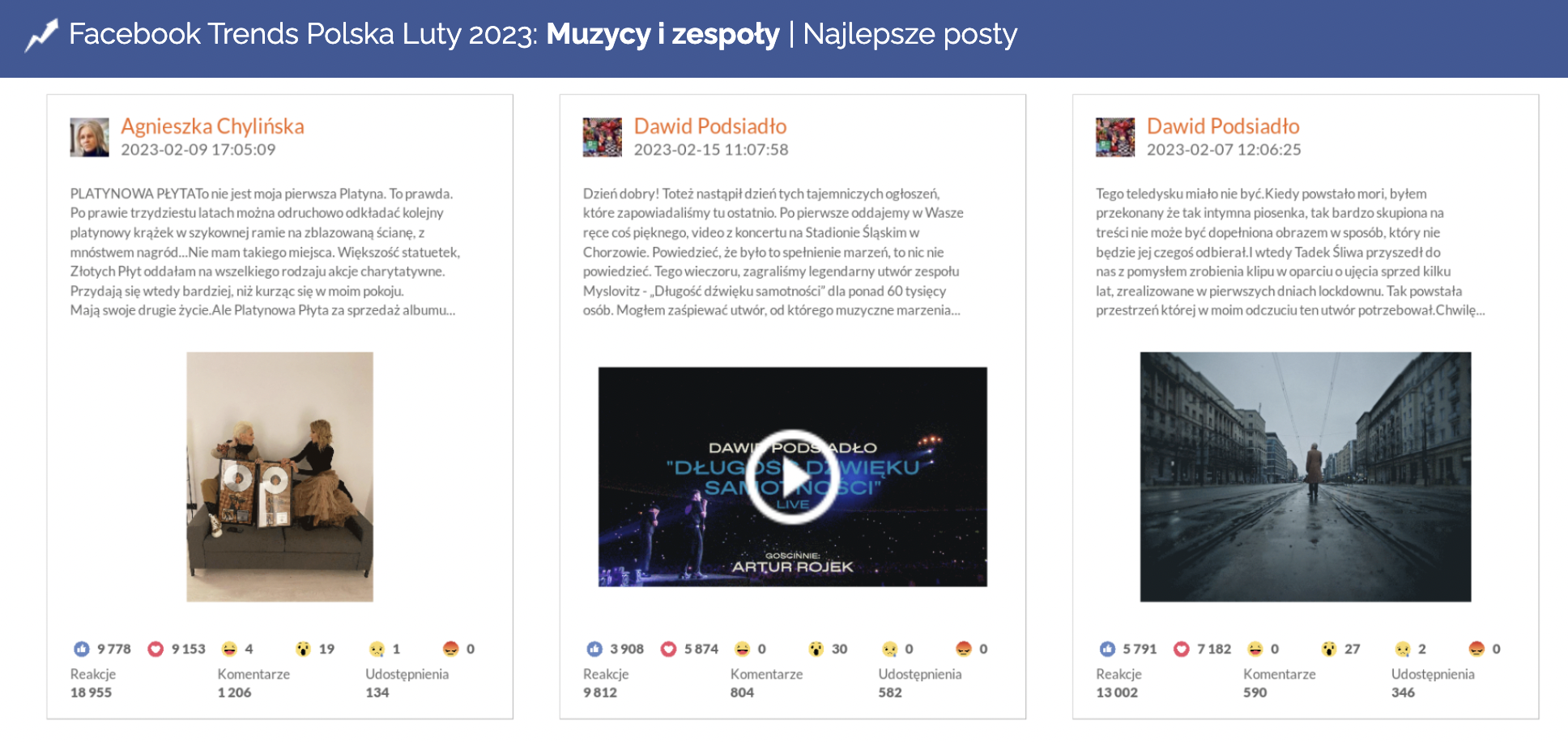 Najlepsze posty w kategorii Muzycy i zespoły w lutym 2023 na Facebooku
