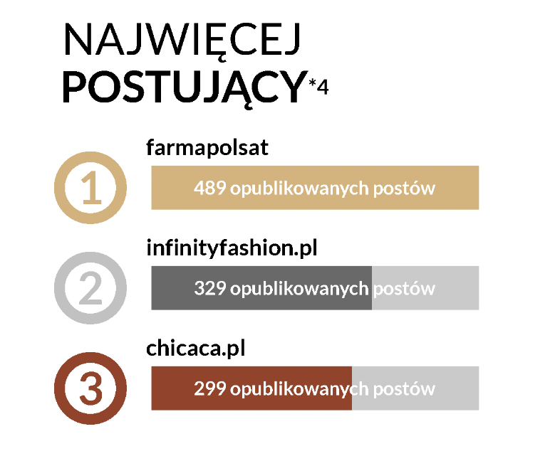 Co ciekawe, w minionym miesiacu, na profilu Farmy pojawiło się najwięcej postów spośród wszystkich analizowanych przez nas profili – aż 489, co daje średnio ok. 17 postów dziennie. Wzmożona aktywność na proflu związana była głównie ze zbliżającym się finałem drugiej edycji programu.