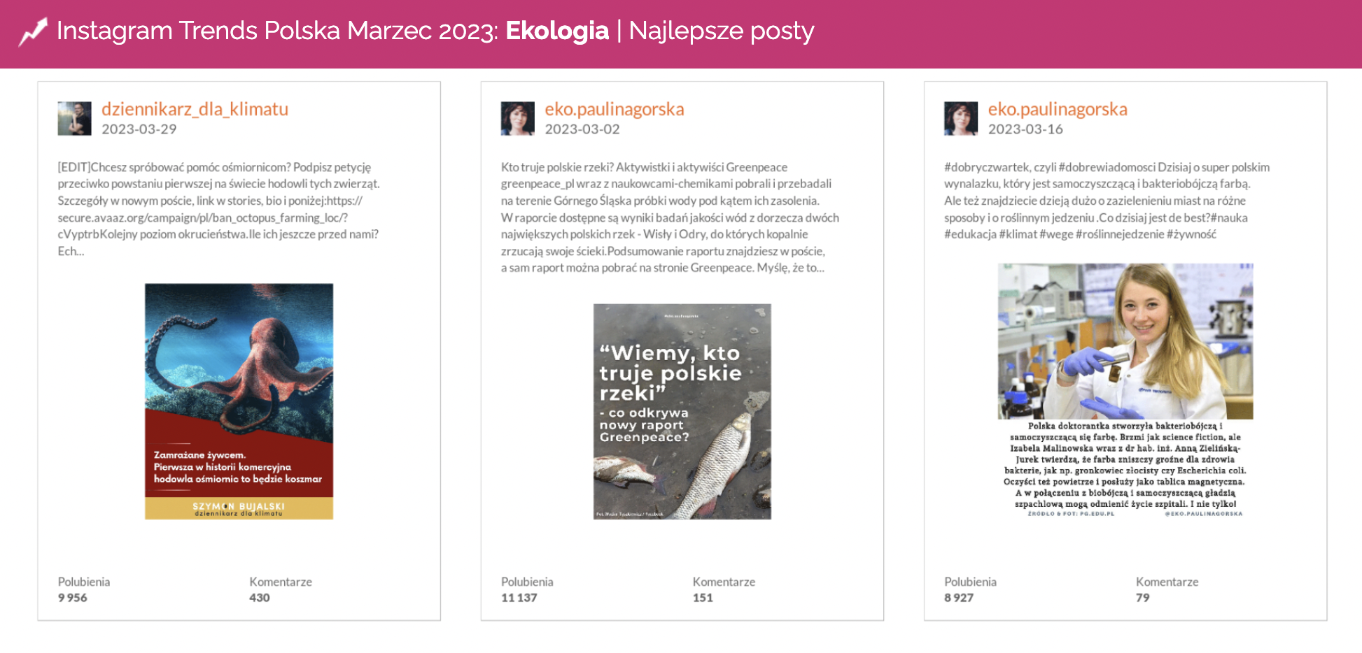 Najbardziej angażujący post w marcu 2023 na Instagramie w kategorii Ekologia