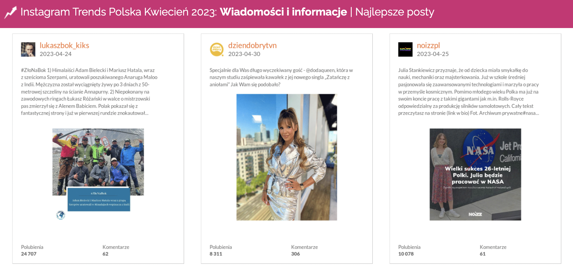 Najlepsze posty na Instagramie w kategorii Wiadomości i informacje | kwiecień 2023