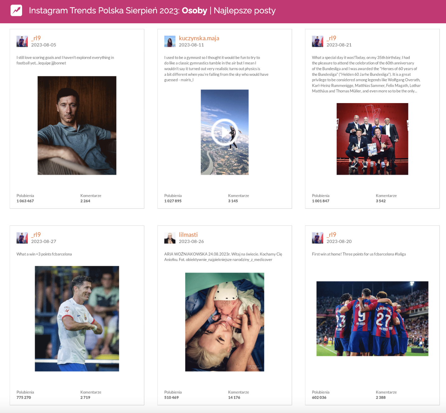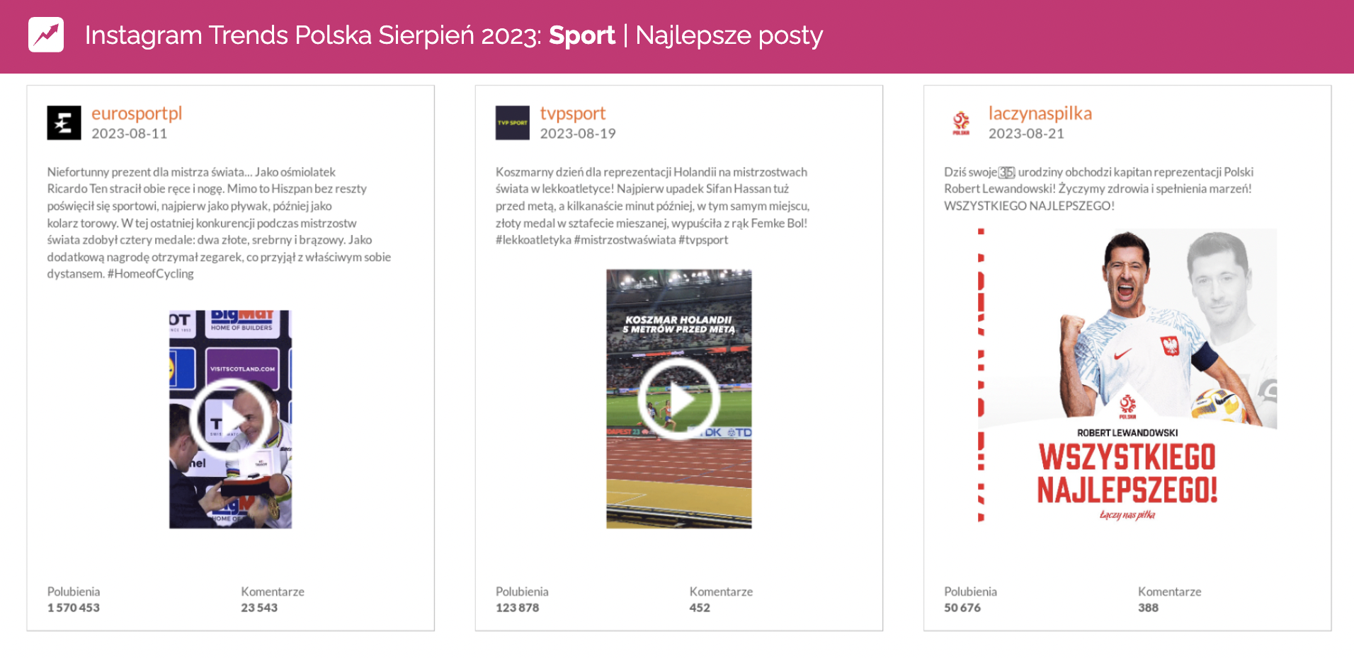 Najlepsze posty w kategorii Media | Sport na Instagramie | sierpień 2023