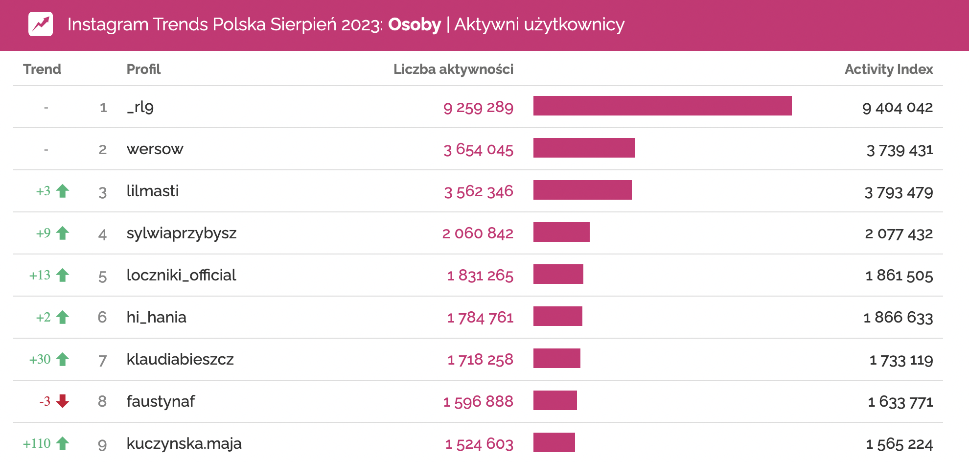 Profile osób o największym zaangażowaniu na Instagramie | sierpień 2023