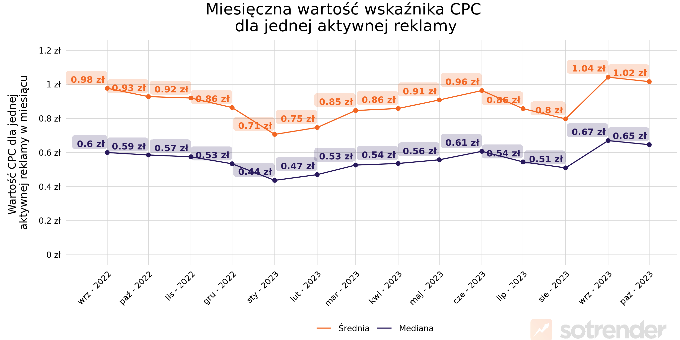 Przez kilka ostatnich miesięcy obserwowaliśmy stabilną średnią wartością wskaźnika CPC. Z kolei we wrześniu i październiku po raz pierwszy w tym roku przekroczył on wartość 1 zł.