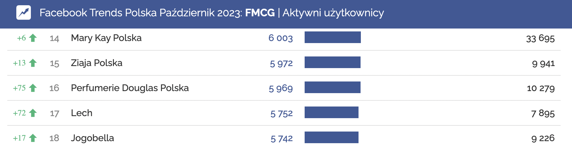Profile w kategorii FMCG o największej liczbie aktywności użytkowników | Facebook, październik 2023