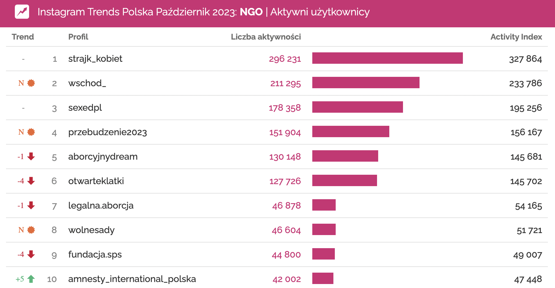 Widać to w zestawieniu Aktywnych użytkowników, w którym wspomniane profile, na tle pozostałych organizacji pozarządowych, w październiku zajęły miejsca w czołówce.