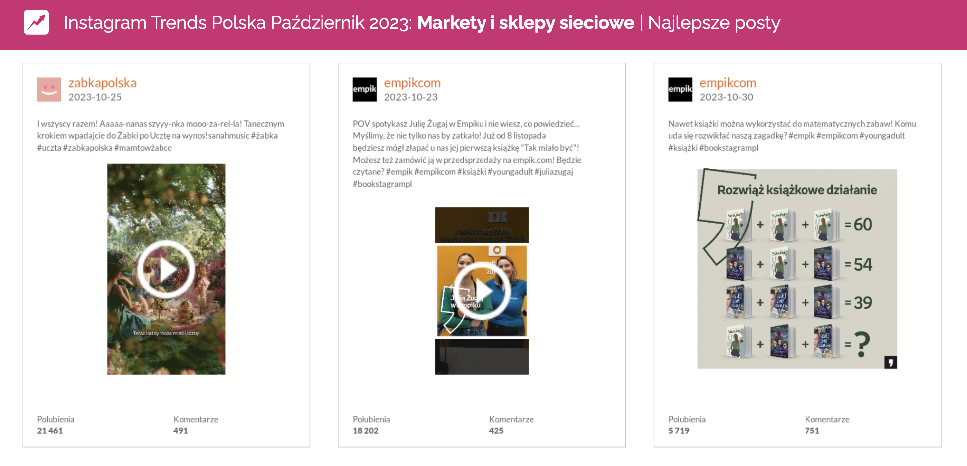 Najlepsze posty na Instagramie w kategorii Markety i sklepy sieciowe, październik 2023