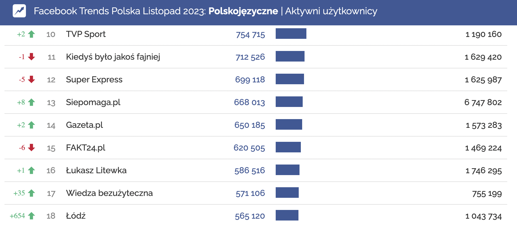 Profile na polskim Facebooku z największą liczbą aktywności | listopad 2023