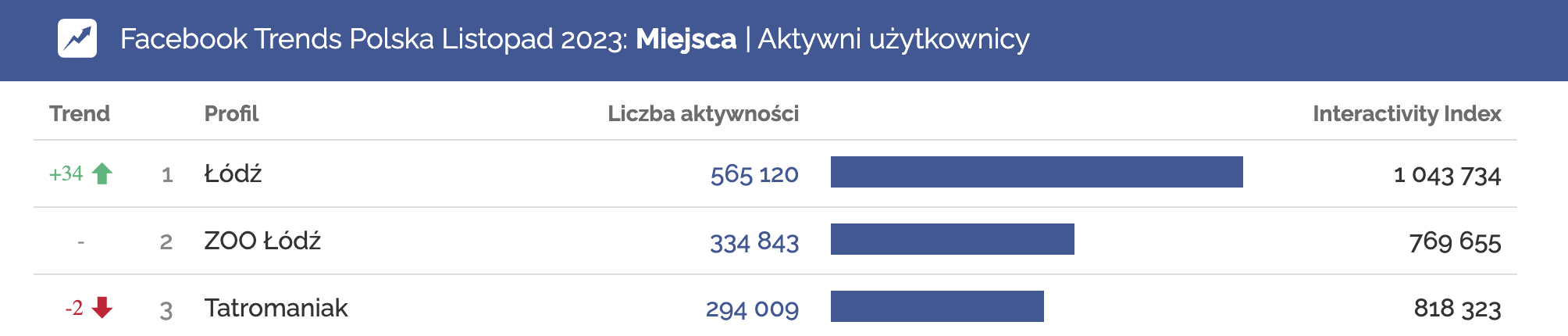 W kategorii Miejsca, pod względem łącznej liczby aktywności to właśnie te dwa łódzkie profile – profil miasta Łódź oraz łódzkiego ZOO – znalazły się na prowadzeniu.