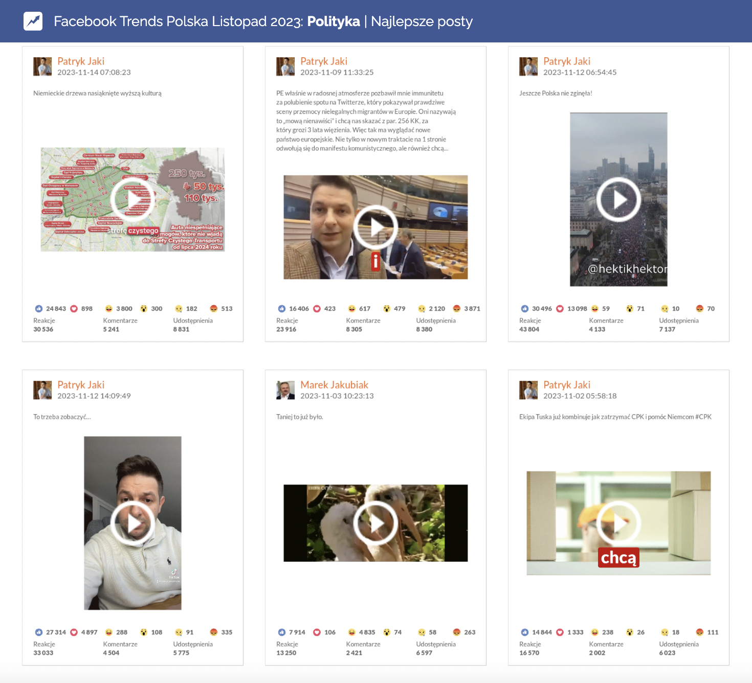 Najlepsze posty w kategorii Polityka na Facebooku | listopad 2023