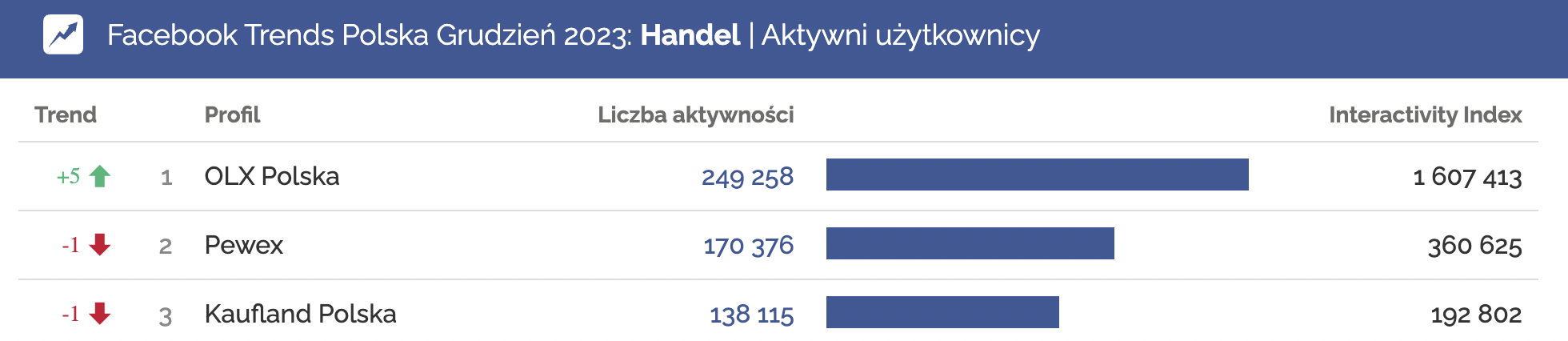 Profile o największej liczbie aktywności w kategorii Handel | Facebook grudzień 2023