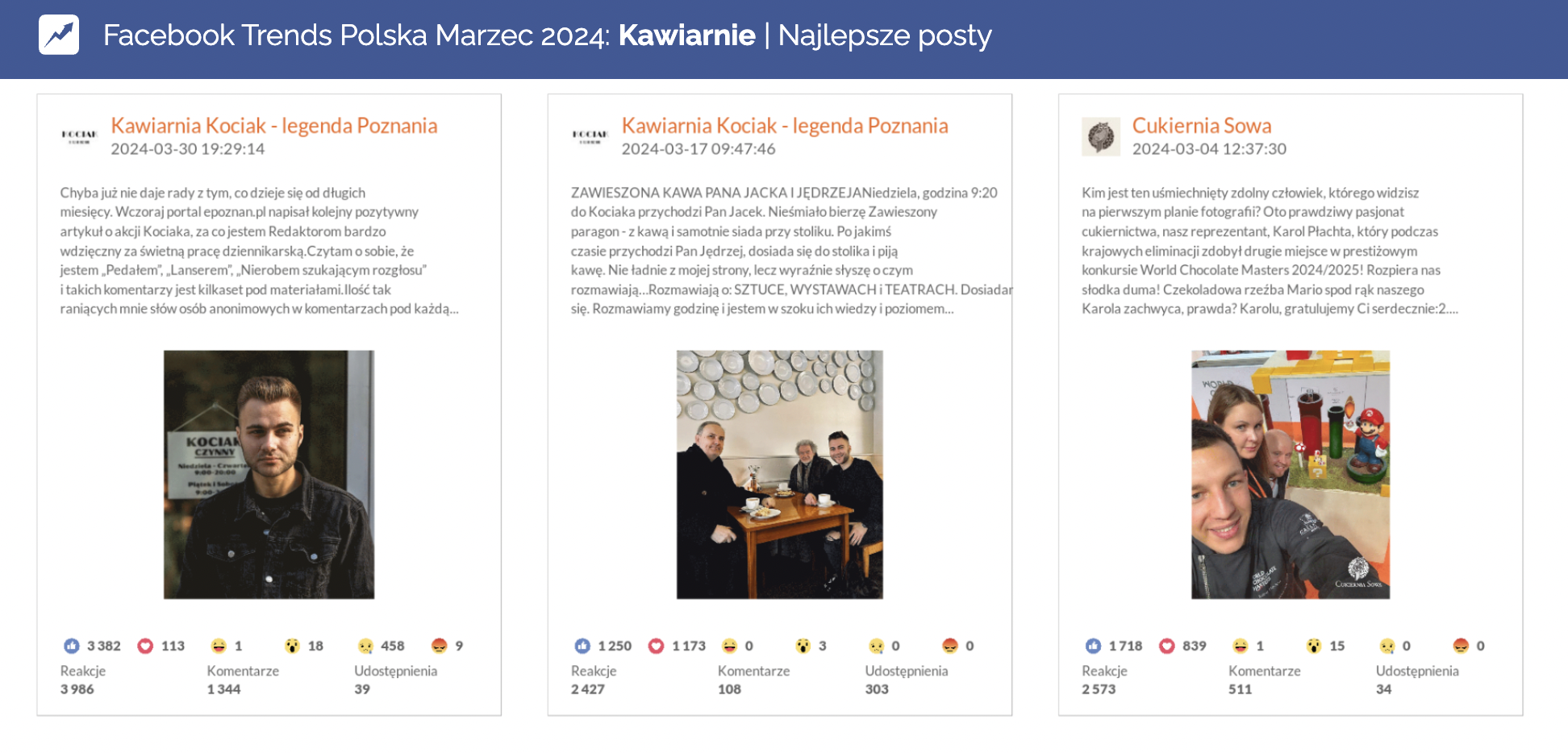 Najlepsze posty na Facebooku w kategorii Kawiarnie | marzec 2024