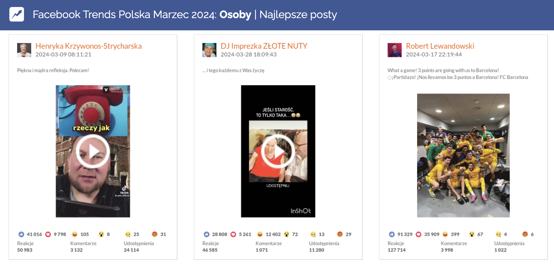 Najlepsze posty na Facebooku w kategorii Osoby | marzec 2024