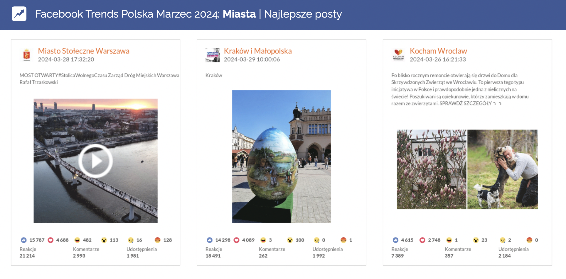 Najlepsze posty na Facebooku w kategorii Miasta | marzec 2024