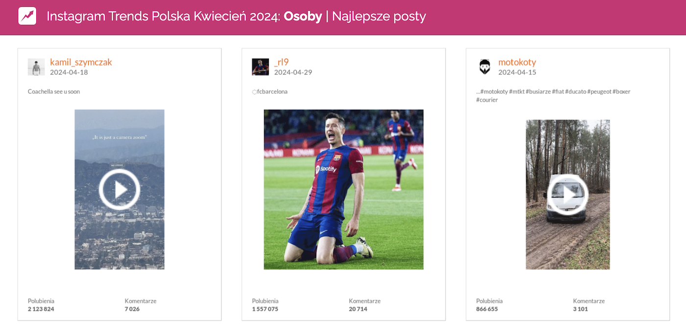 Virali w kwietniu było znacznie więcej – opublikowali je m.in. MotoKoty i Marta Mielczarska, których profile również awansowały do TOP20 najbardziej angażujących profili osób.
