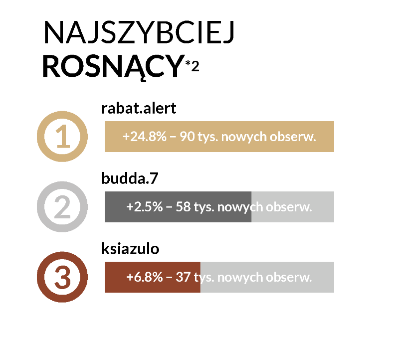 Z kolei drugim najszybciej rosnącym profilem na polskim Instagramie w kwietniu był profil innego youtubera – Buddy, na którego koncie pojawiło się 58 tys. nowych obserwujących.