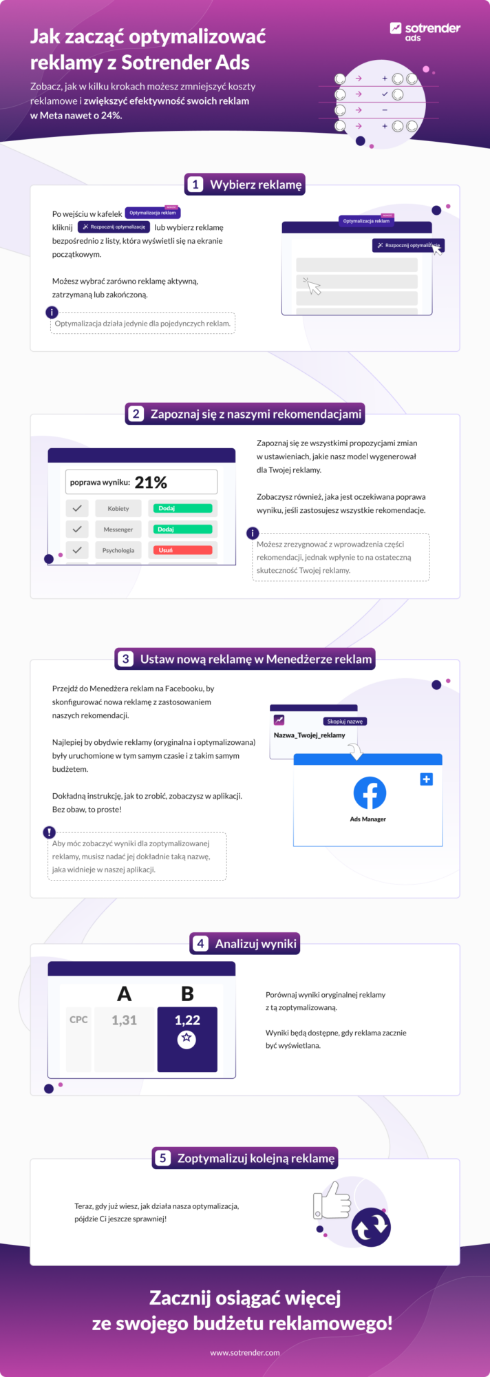 Przedstawiamy Optymalizację reklam Meta, która już jest dostępna w Sotrenderze.